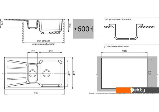 | Способ установки | врезная на столешницу |
