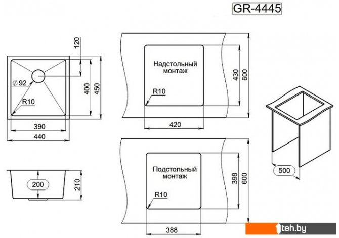 | Способ установки | врезная на столешницу, врезная под столешницу |