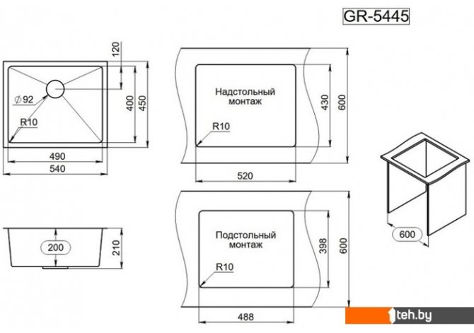 | Способ установки | врезная на столешницу, врезная под столешницу |