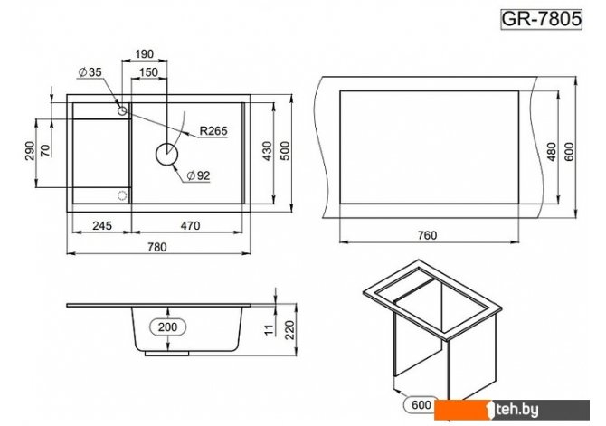 Фотографии, описание и технические характеристики модели мойки для кухни Granula GR-7805 (турмалин) взяты из открытых источников, официального сайта производителя или представительства Granula в Республике Беларусь.