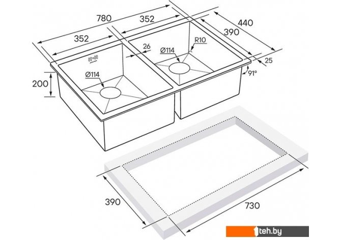 | Способ установки | врезная на столешницу, врезная вровень со столешницей |