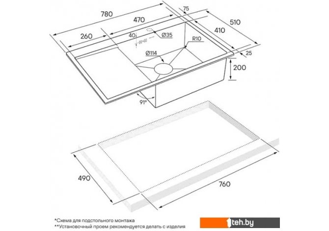 | Способ установки | врезная на столешницу, врезная вровень со столешницей |