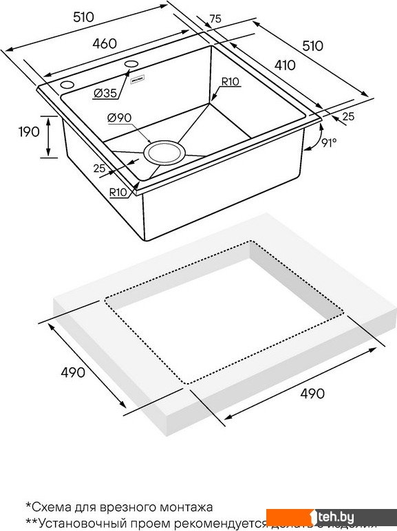 Способ установки | врезная на столешницу |