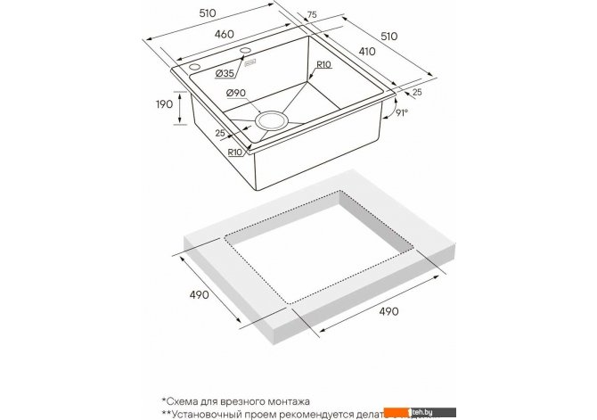 | Способ установки | врезная на столешницу |