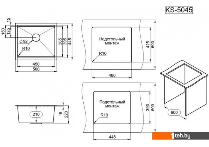 | Способ установки | врезная на столешницу, врезная под столешницу |