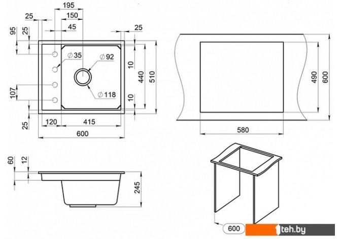 | Ширина мойки | 60 см |