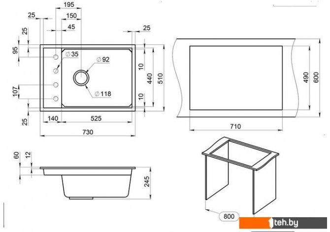 | Ширина мойки | 73 см |