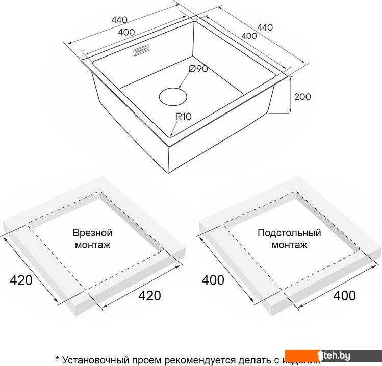 Способ установки | врезная на столешницу, врезная под столешницу |