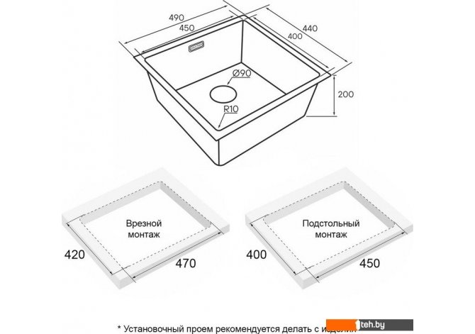 | Способ установки | врезная на столешницу, врезная под столешницу |