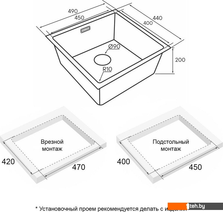 Способ установки | врезная на столешницу, врезная под столешницу |