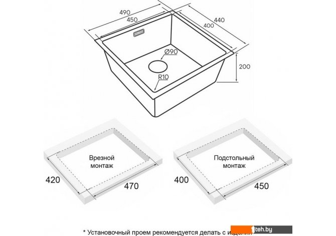 | Способ установки | врезная на столешницу, врезная под столешницу |