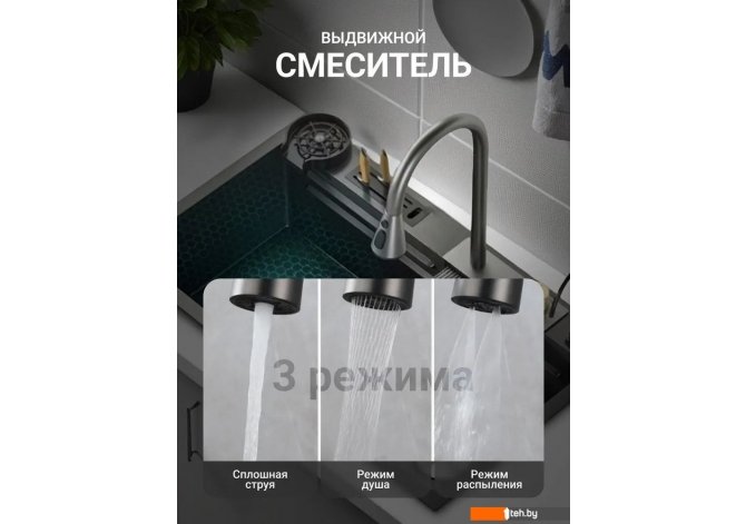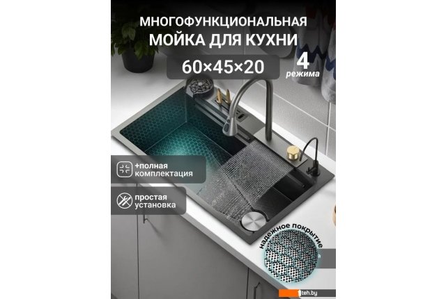 | Комплектация | смеситель, сифон, разделочная доска, коландер, кран для фильтрованной воды, инструкция, держатели (для ножей) |