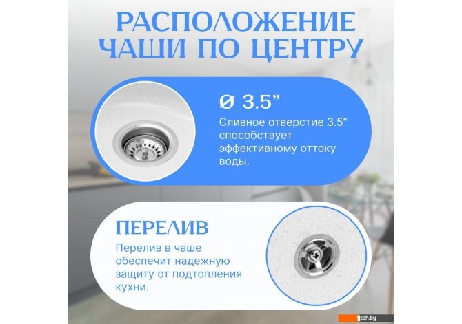 | Диаметр сливного отверстия | 3.5" |