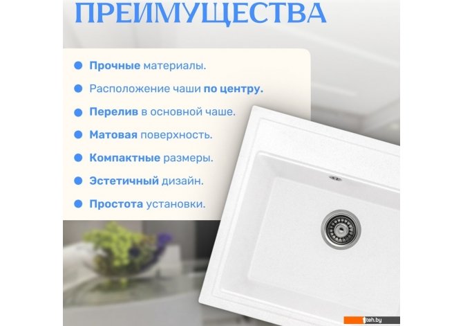 | Информация | - Мойка кухонная Mare — это стильный и практичный элемент, который поможет организовать рабочее пространство на кухне. Изготовленная из керамогранита, она отличается высокой прочностью и стойкостью к повреждениям. Прямоугольная форма мойки позволяет удобно вписать ее в различные дизайнерские решения, а белый цвет с матовой поверхностью придает кухне свежий и современный вид. |