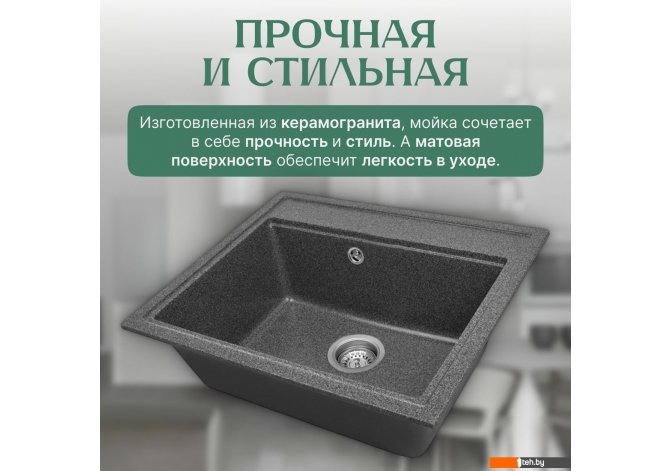 | Информация | - Мойка кухонная Mare — это практичный и стильный элемент, который значительно упрощает работу на кухне. Изготовленная из керамогранита, она отличается высокой прочностью и стойкостью к повреждениям. Прямоугольная форма мойки позволяет удобно интегрировать ее в любой интерьер. Серый цвет с графитовым оттенком и матовая поверхность придают кухне современный и лаконичный вид. |