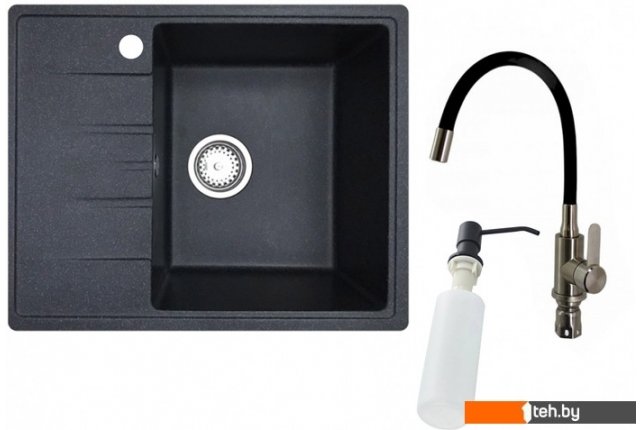 | Информация | В комплект входит: - Мойка кухонная БелЭворс Mila R (черный) - Смеситель Wisent W74004-2 - Дозатор встраиваемый в мойку Ledeme L405F |