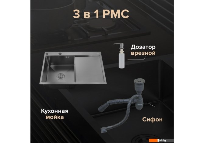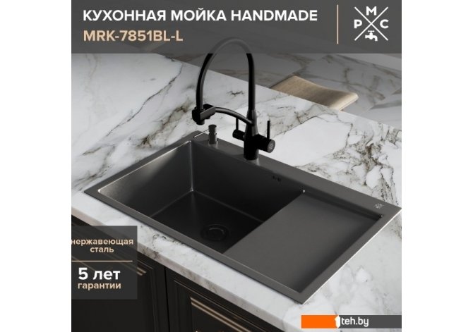 Фотографии, описание и технические характеристики модели мойки для кухни РМС MRK-7851BL-L (с дозатором) взяты из открытых источников, официального сайта производителя или представительства РМС в Республике Беларусь.