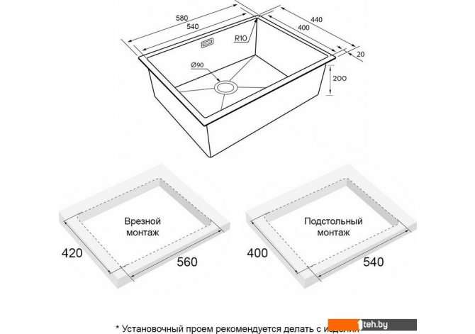 | Способ установки | врезная на столешницу, врезная под столешницу, врезная вровень со столешницей |