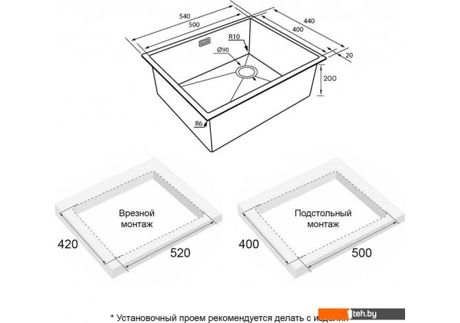 | Способ установки | врезная на столешницу, врезная под столешницу, врезная вровень со столешницей |