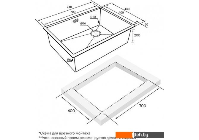| Способ установки | врезная на столешницу, врезная под столешницу, врезная вровень со столешницей |