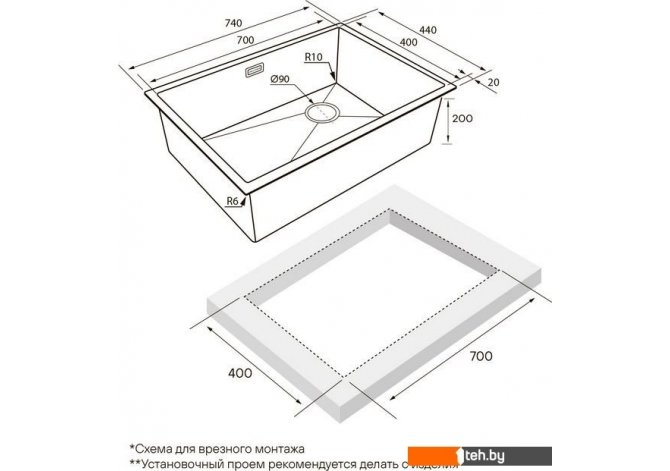 | Способ установки | врезная на столешницу, врезная под столешницу, врезная вровень со столешницей |