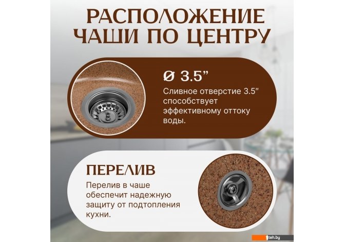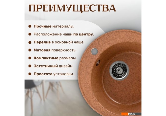 | Информация | - Мойка кухонная Nova — идеальное решение для современной кухни, обеспечивающее комфорт в процессе готовки и уборки. Изготовленная из керамогранита, она отличается высокой прочностью и стойкостью к повреждениям. Коричневый терракотовый цвет с матовой поверхностью придаёт кухне уютный и стильный вид. |