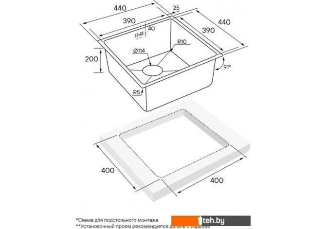 | Способ установки | врезная на столешницу, врезная под столешницу, врезная вровень со столешницей |