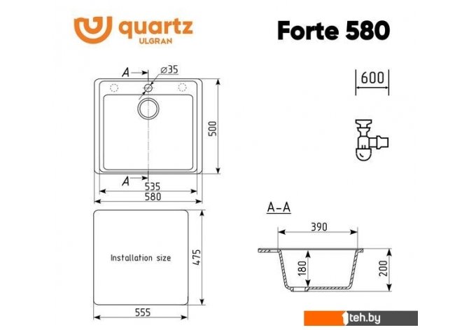 Если хотите купить мойка для кухни Ulgran QUARTZ Forte 580-03 (десерт) то следует уточнить все параметры и габариты модели перед покупкой. Представленые характеристики на сайте 1teh.by могут отличаться от действительных или указанных производителем. Описание, фото товара и технические характеристики представлены для справки.