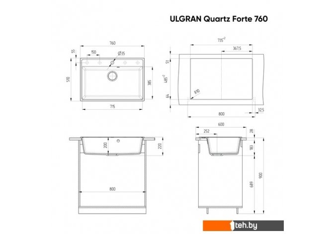 Фотографии, описание и технические характеристики модели мойки для кухни Ulgran Quartz Forte 760 (уголь) взяты из открытых источников, официального сайта производителя или представительства Ulgran в Республике Беларусь.