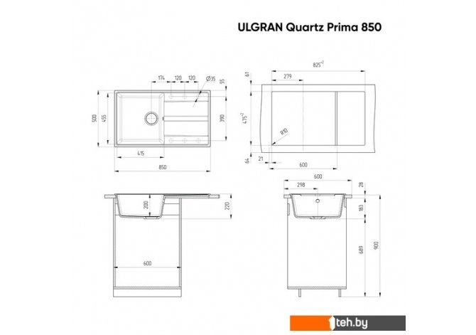 Фотографии, описание и технические характеристики модели мойки для кухни Ulgran Quartz Prima 850 (уголь) взяты из открытых источников, официального сайта производителя или представительства Ulgran в Республике Беларусь.