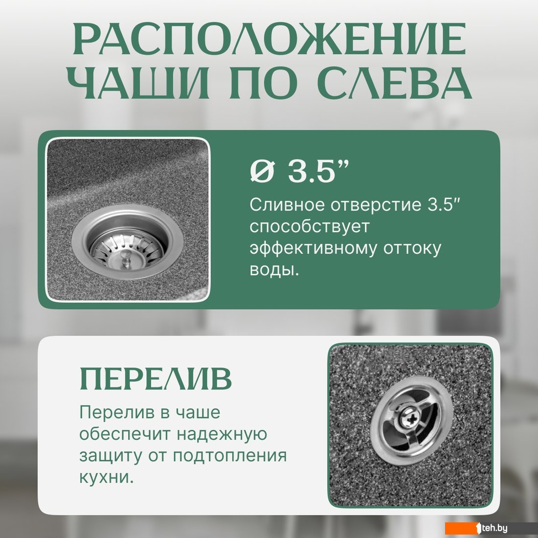 | Информация | - Мойка кухонная Rosa в графитовом цвете — это современное и практичное решение для вашей кухни. Изготовленная из керамогранита, она отличается высокой прочностью и стойкостью к повреждениям. Врезной способ установки позволяет легко интегрировать мойку в кухонное пространство, а прямоугольная форма оптимально использует рабочую поверхность. Матовая текстура серого цвета придает стильный вид, делая мойку Rosa акцентом в интерьере. |