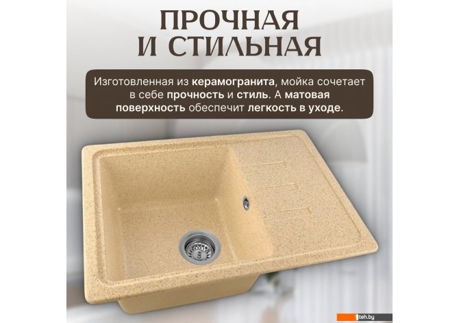 | Информация | - Мойка кухонная Rosa в цвете песок — это идеальное сочетание практичности и стиля для вашей кухни. Изготовленная из керамогранита, она обладает высокой прочностью и стойкостью к повреждениям. Врезной способ установки на столешницу обеспечивает легкую интеграцию в кухонное пространство, а прямоугольная форма позволяет эффективно использовать рабочую поверхность. Матовый бежевый цвет создает атмосферу уюта и гармонии. |