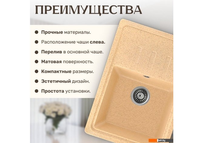 Если хотите купить мойка для кухни Saniteco Rosa (песок) то следует уточнить все параметры и габариты модели перед покупкой. Представленые характеристики на сайте 1teh.by могут отличаться от действительных или указанных производителем. Описание, фото товара и технические характеристики представлены для справки.