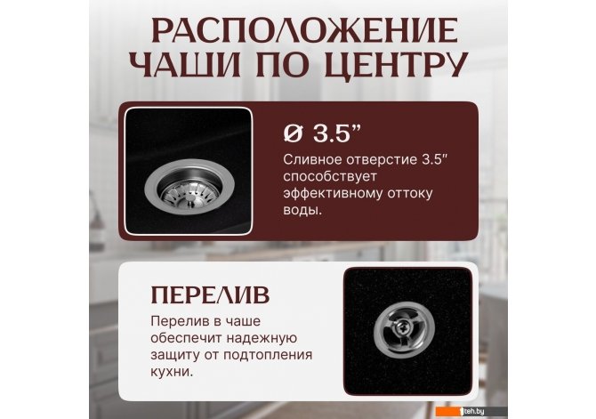 | Диаметр сливного отверстия | 3.5" |