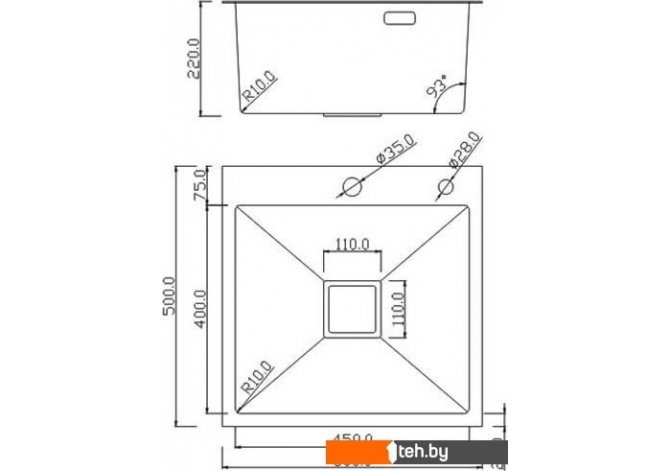 | Диаметр сливного отверстия | 3.5" |