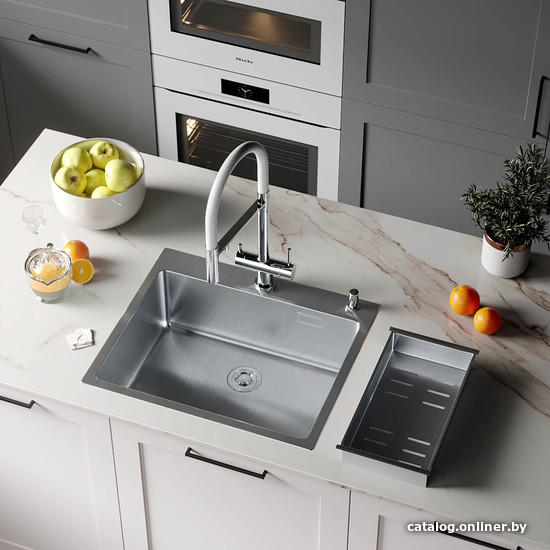Комплектация | сифон с гофрой, коландер из нержавеющей стали, дозатор для моющих средств, корзинчатый вентиль, 2 заглушки на отверстия, комплект креплений к столешнице |