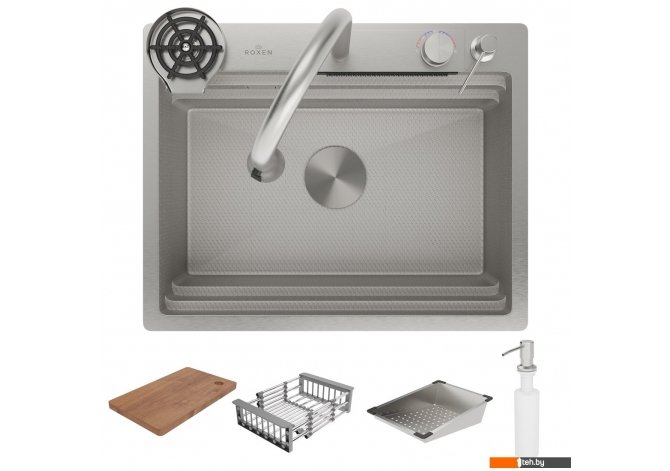 Фотографии, описание и технические характеристики модели мойки для кухни Roxen Stage Plus 560250-60-S многофункциональная 8 в 1 (60*48/текстурный сатин) взяты из открытых источников, официального сайта производителя или представительства Roxen в Республике Беларусь.
