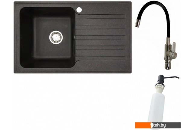 Кухонные мойки БелЭворс Styl L + смеситель W74004-2 + дозатор L405F (черный)