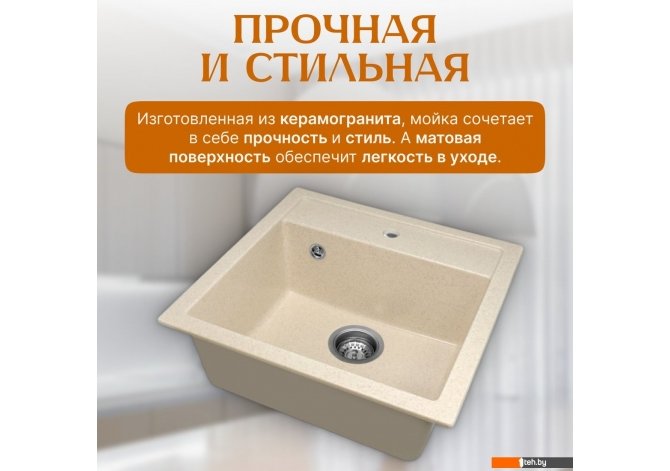 | Информация | - Мойка кухонная Terra — идеальное решение для организации пространства на вашей кухне. Изготовленная из керамогранита, она отличается высокой прочностью и долговечностью, что делает её отличным выбором для активного использования. |