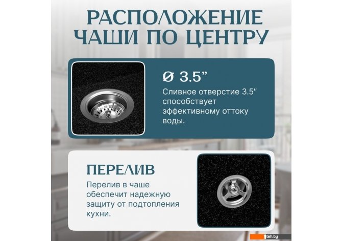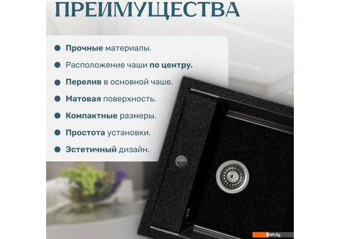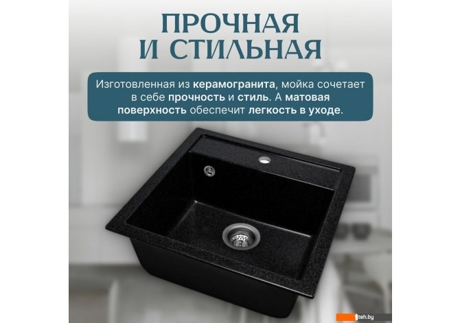 | Информация | - Мойка кухонная Terra (черный) — идеальный выбор для современной кухни. Керамогранитные мойки отличаются прочностью и стойкостью к повреждениям. Прямоугольная форма и матовая поверхность придают элегантный вид, который легко вписывается в любой интерьер. |