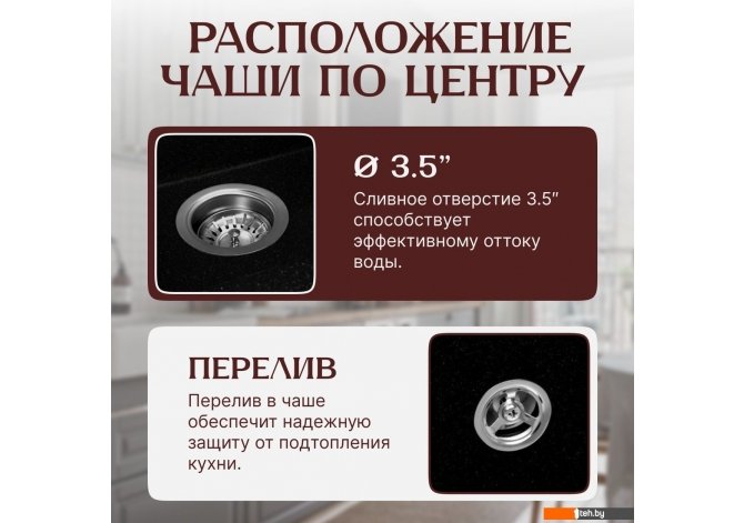 | Диаметр сливного отверстия | 3.5" |