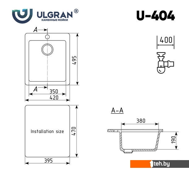 Если хотите купить мойка для кухни Ulgran U-404 (343 антрацит) то следует уточнить все параметры и габариты модели перед покупкой. Представленые характеристики на сайте 1teh.by могут отличаться от действительных или указанных производителем. Описание, фото товара и технические характеристики представлены для справки.