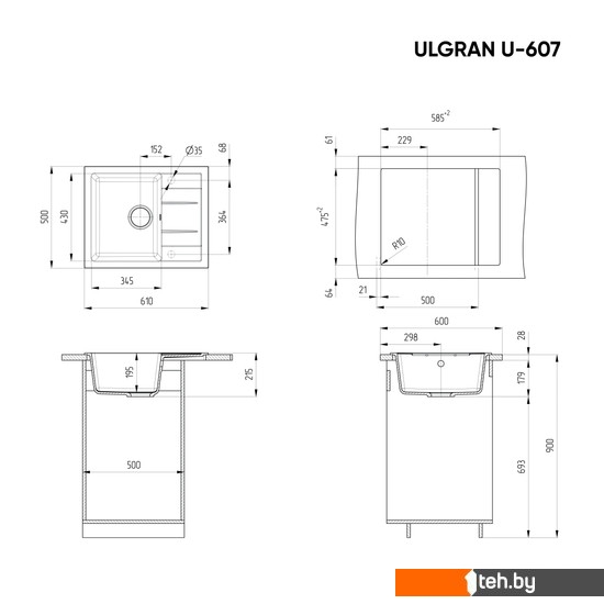 Фотографии, описание и технические характеристики модели мойки для кухни Ulgran U-607 (ультра-черный) взяты из открытых источников, официального сайта производителя или представительства Ulgran в Республике Беларусь.