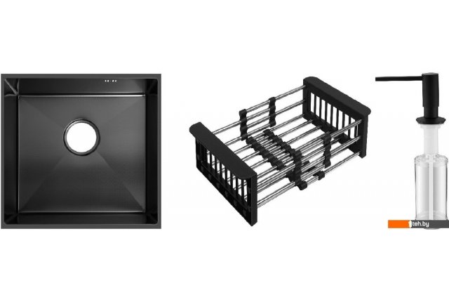 Undermount Best Decor Black 4545 + коландер KR-1 BLACK+ дозатор SD-1 BLACK