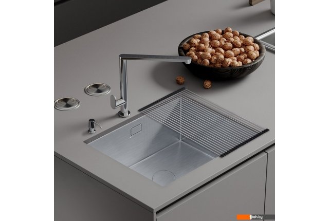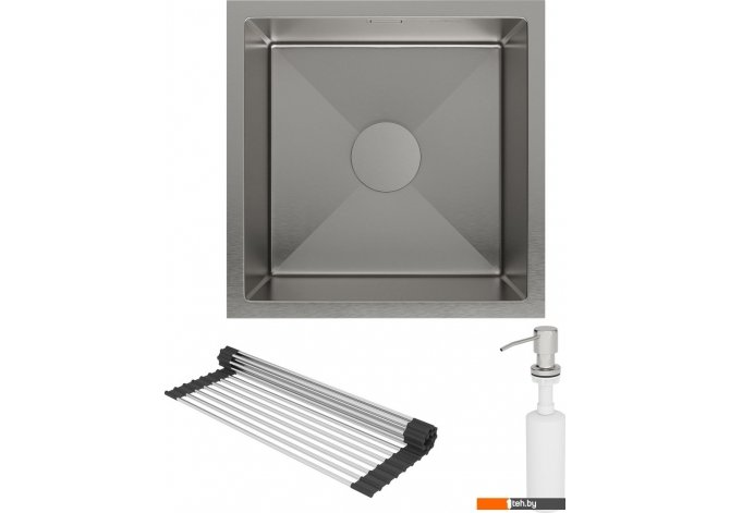 | Комплектация | ?стальная мойка ?сифон ?корзинчатый вентиль ?декоративная накладка ?дозатор для моющих средств ?ролл-мат ?комплект креплений |