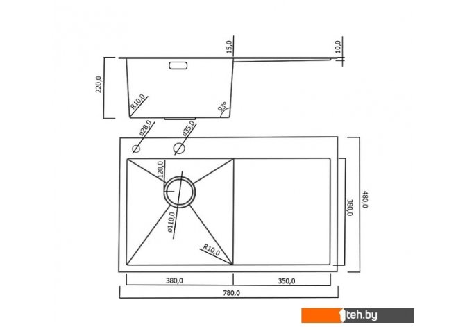 | Толщина стали | 3 мм (- бортика, чаша - 1.5 мм) |
