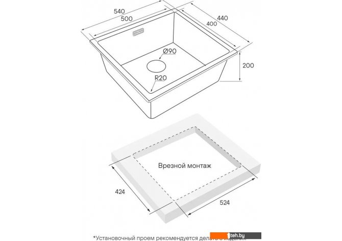 | Способ установки | врезная на столешницу, врезная под столешницу |
