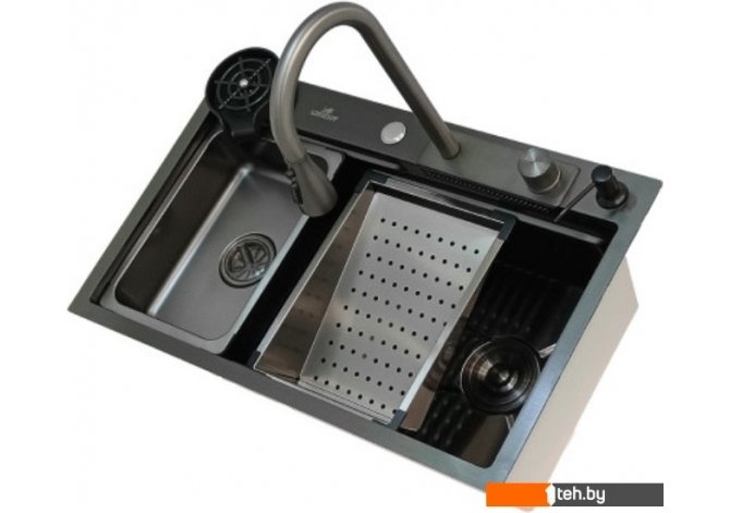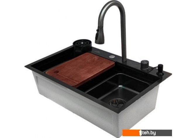 | Комплектация | стальная мойка WG37546B с сифоном смеситель WG4001B дозатор WW405B ринзер WW413B разделочная доска 2 коландера |