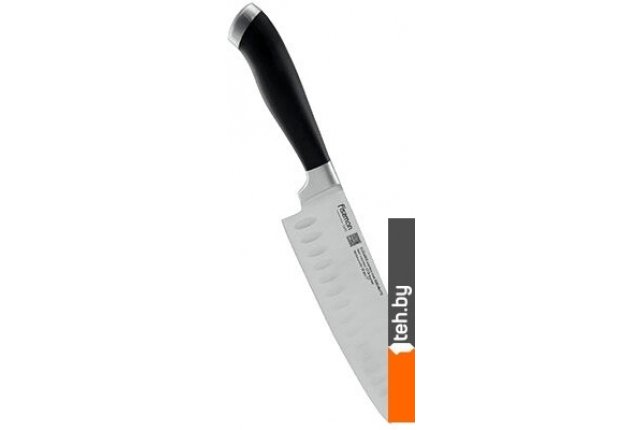 | Информация | Нож сантоку предназначен для шинковки овощей, тонкой нарезки, разделки мяса и рыбы. Углубления на поверхности облегчают использование: в них при нарезке остается воздух, поэтому продукты не налипают на лезвие. Утолщенная пята клинка предотвращает соскальзывание пальцев на лезвие и обеспечивает дополнительный упор во время работы. |