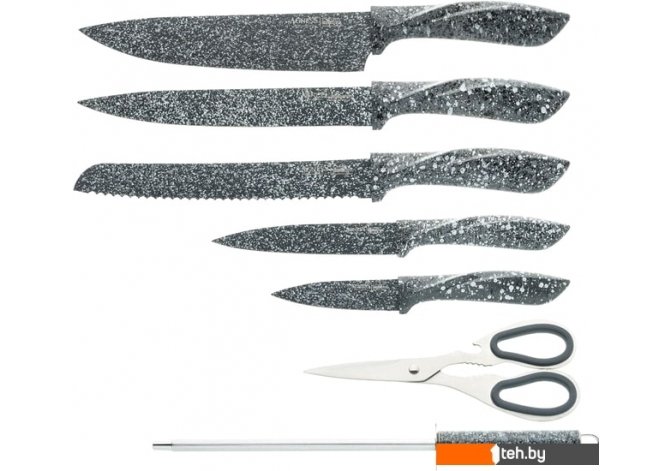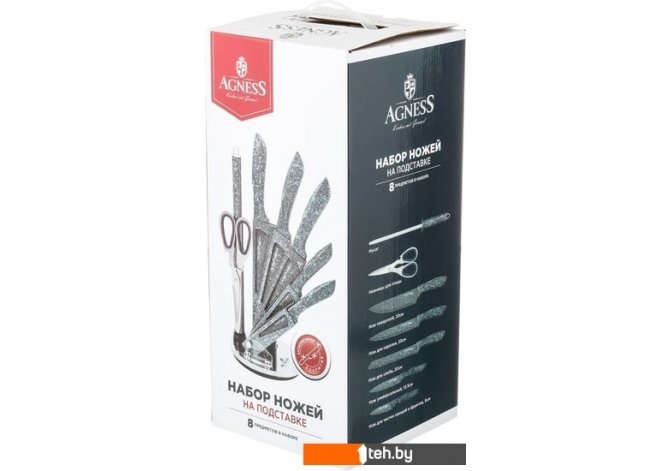 | Дополнительные предметы в наборе | кухонные ножницы, точило для ножей, подставка |
